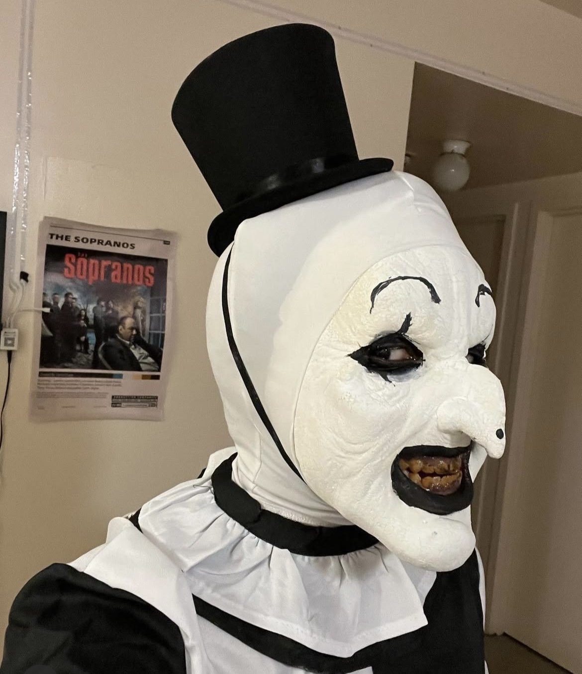 A foam latex prosthetics look recreating Art the Clown from the “Terrifier” Franchise